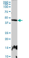 Detection of mouse E2F2 by immunoblotting. Sample: Whole tissue extract from mouse kidney. Primary antibody: Anti-E2F2 Rabbit pAb (Cat. No. DR1095) (1-5 µg/ml). Detection: chemiluminescence.