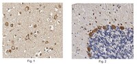 Immunohistochemistry Analysis: A 1:50-500 dilution from a representative lot detected GST Omega 1 (GSTO1) in human cerebral cortex and rat cerebellum tissue.