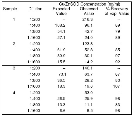 Kit contains | Pre-Coated 96-Well Plate, Anti-Cu/Zn SOD/HRP-Conjugate, Cu/Zn SOD Standard, Wash Buffer Concentrate, Assay Buffer Concentrate, Phosphate Buffered Saline, Substrate Solution, Stop Solution, Plate Covers, and a user protocol. |