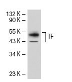 Detection of human tissue factor by immunoblotting. Sample: Whole cell lysate from JEG-3 cells. Primary antibody: Anti-Tissue Factor Mouse mAb (TF9-10H10) (Cat. No. 612161) (1:1000). Detection: chemiluminescence.