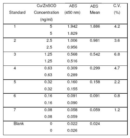 Cu/Zn Superoxide Dismutase ELISA Kit Certificates of Analysis