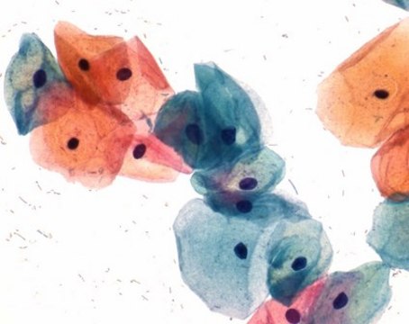 Papanicolaou′s solution 3d polychromatic solution EA 65 - for cytology, is a ready-to-use solution used for human-medical cell diagnosis and serve the purpose of the cytological investigation of sample material of human origin, for example, gynecological and clinico-cytological specimen materials. Papanicolaou′s technique is the most used staining procedure for cytological specimen is and is intended for the the staining of exfoliative cells in cytological specimens. In the first step, the cell nuclei are stained either progressively or regressively with a hematoxylin solution, (Hematoxylin solution modified according to Gill II, (Product number 1.05175), Papanicolaou′s solution 1a Harris hematoxylin solution, (Product number 1.09253) or Papanicolaou′s solution 1b Hematoxylin solution S, (Product number 1.09254)). Nuclei are stained blue to dark violet. In the progressive hematoxylin staining method, staining is carried out to the endpoint, after which the slide is blued in tapwater. With the regressive method the material is over-stained and the excess of staining solution is removed by acid rinsing steps, followed by the bluing step. The structures of nuclei are more differentiated and better visible by the regressive method. The second staining step is cytoplasmic staining by orange staining solution (Papanicolaou′s solution 2b Orange II solution, Product number 1.106887 or Papanicolaou′s solution 2a Orange G solution (OG6), Product number 1.06888), especially for demonstration of mature and keratinized cells. The target structures are stained orange in different intensities. In the third staining step is used the so-called polychrome solution, a mixture of eosin, light green SF and Bismarck brown, (Papanicolaou′s solution 3a polychromatic solution EA 31, (Product number 1.09271), Papanicolaou′s solution 3b polychromatic solution EA 50, (Product number 1.09272), Papanicolaou′s solution 3c polychromatic solution EA 65, (Product number 1.09270), or Papanicolaou′s solution 3d polychromatic solution EA 65, (Product number 1.09269). The polychrome solution is used for demonstration of differentiation of squamous cells. Papanicolaou′s solution 3d polychromatic solution EA 65 gives a delicate, blue-green-pinkish staining result in clinical specimen material.