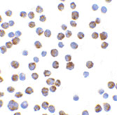 Application Data | ![]() Detection of human Bim by immunoblotting. Samples: Whole cell lysate from K562 cells at primary antibody dilutions 2.5 µg/ml (lane A) and µg/ml (lane B). Primary antibody: Anti-Bim (22-40) Rabbit pAb (Cat. No. 202000) (5 µg/ml). Detection: chemiluminescence. ![]() Detection of human Bim by immunocytochemistry. Sample: K562 cells. Primary antibody: Anti-Bim (22-40) Rabbit pAb (Cat. No. 202000) (10 µg/ml). Detection: fluorescence. |