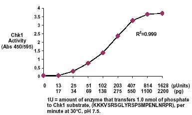 | Sensitivity | 25 pg (0.018 mU) purified Chk1 |
