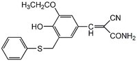 More>> A cell-permeable, reversible, and substrate competitive protein tyrosine kinase inhibitor (IC₅₀ = 370 nM) that also inhibits HGF-induced MAP kinase activation in hepatocytes. Less<<Synonyms: α-Cyano-(3-ethoxy-4-hydroxy-5-phenylthiomethyl)cinnamide