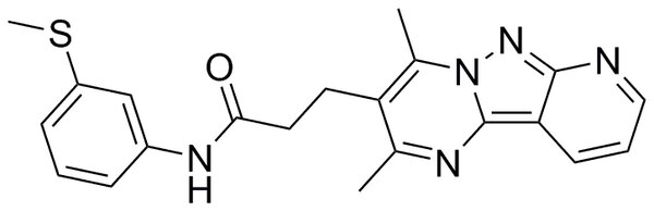 More>> Cell-permeable, potent and reversible PanK inhibitor. Blocks de novo CoA biosynthesis (IC₅₀ = 0.9 µM in C3A cells). Less<<Synonyms: 3-(2,4-Dimethylpyrido-[2ʹ,3ʹ:3,4]pyrazolo[1,5-a]pyrimidin-3-yl)-N-(3-(methylthio)phenyl)propanamide, PanK Inhibitor