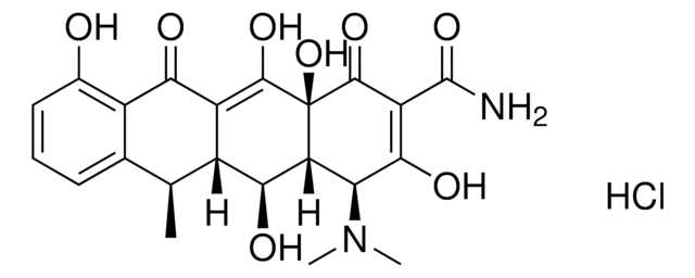 1S/C22H24N2O8.ClH/c1-7-8-5-4-6-9(25)11(8)16(26)12-10(7)17(27)14-15(24(2)3)18(28)13(21(23)31)20(30)22(14,32)19(12)29;/h4-7,10,14-15,17,25-27,31-32H,23H2,1-3H3;1H/b21-13-;/t7-,10+,14+,15-,17-,22-;/m0./s1